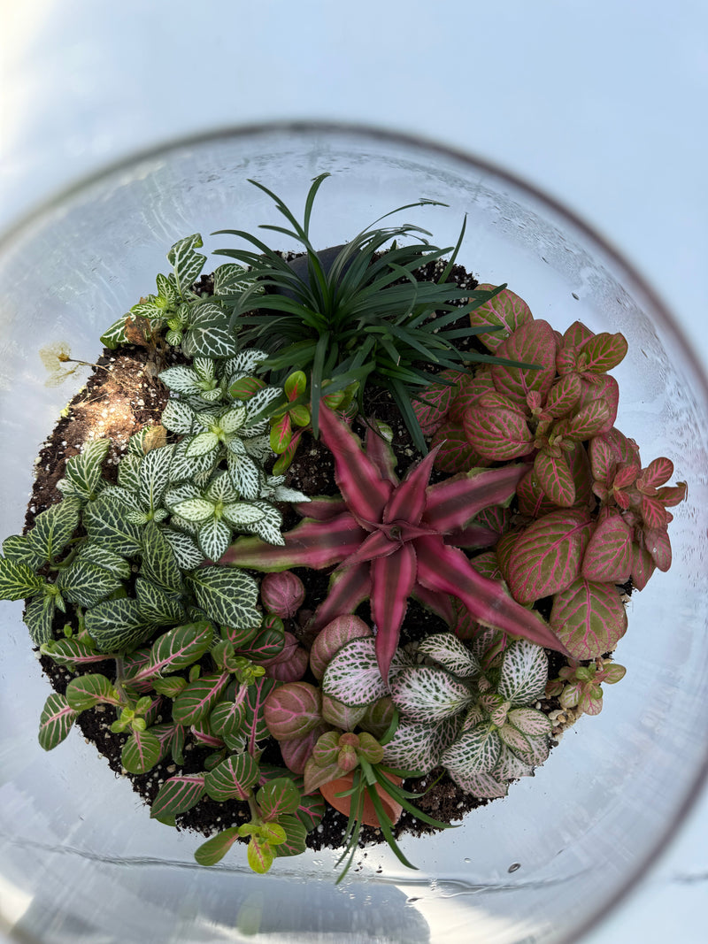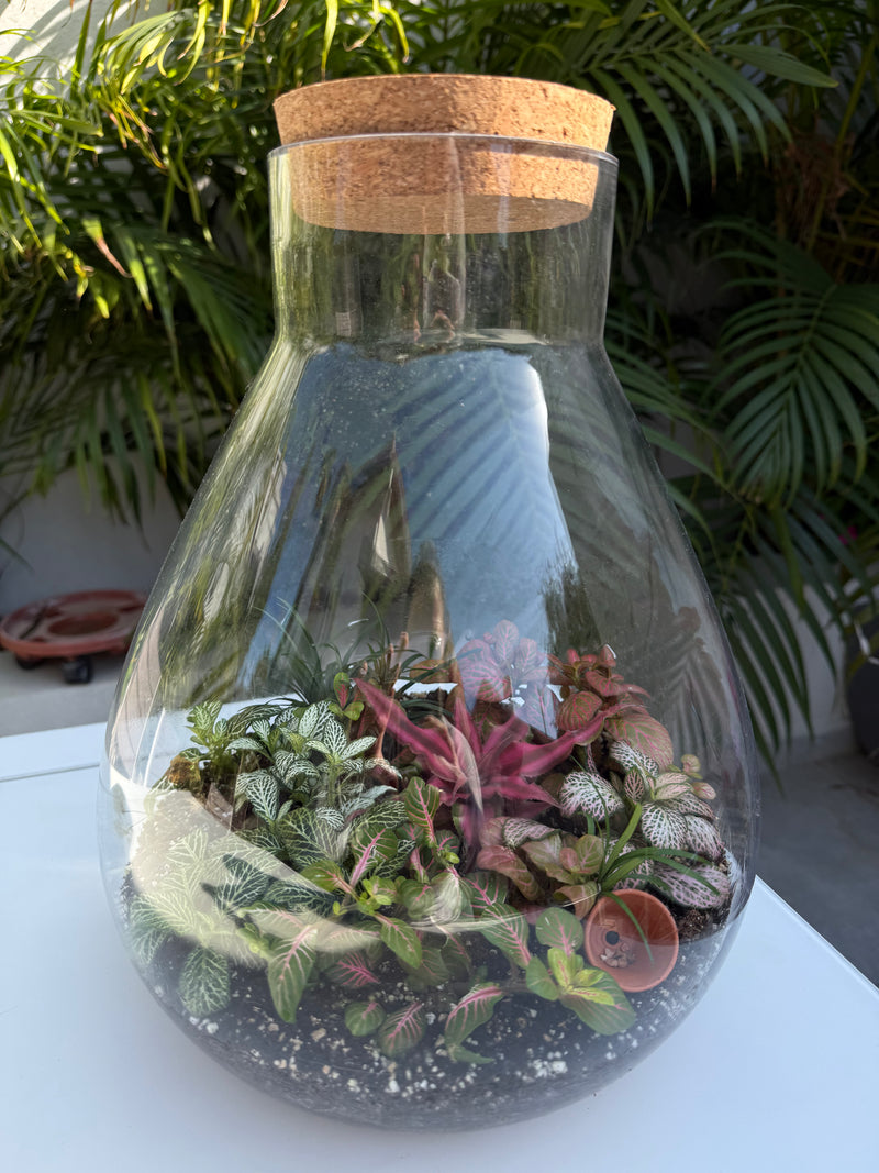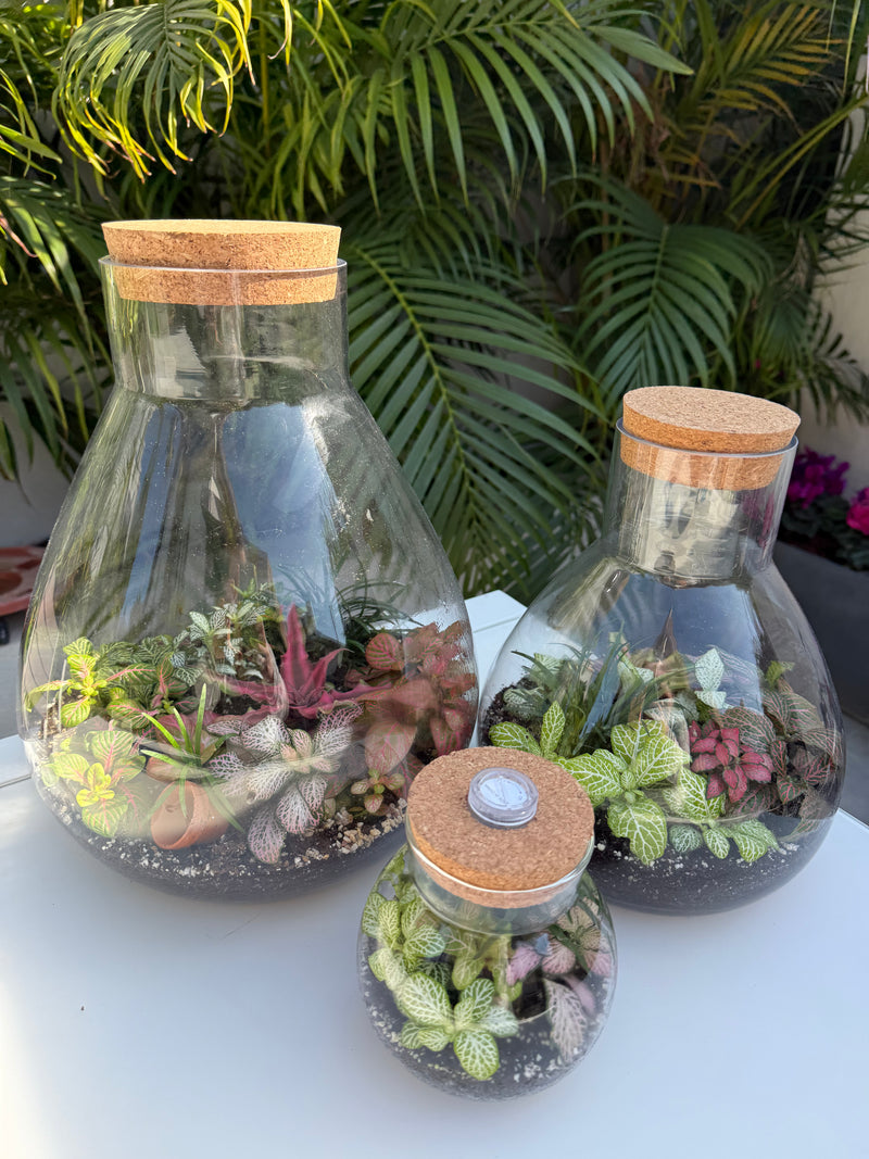 טרריום צמחים סגור הוא עולם קטן ושקט בתוך כלי זכוכית אטום.